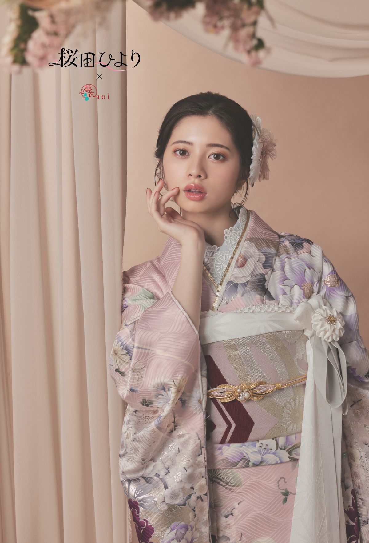 柔らかなピンクに、繊細な花柄が美しく重なる一着。