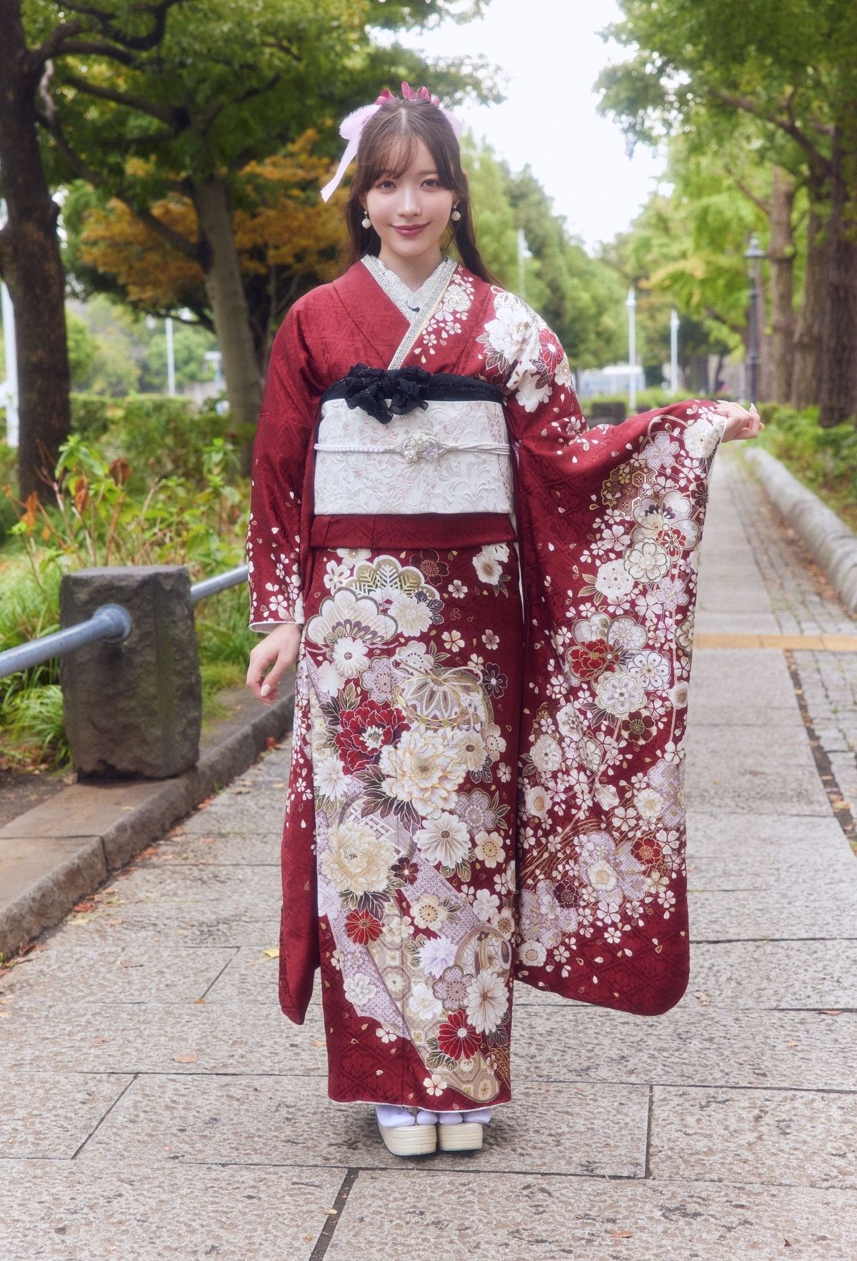 落ち着きのある深紅の振袖で大人の一歩を踏み出そう