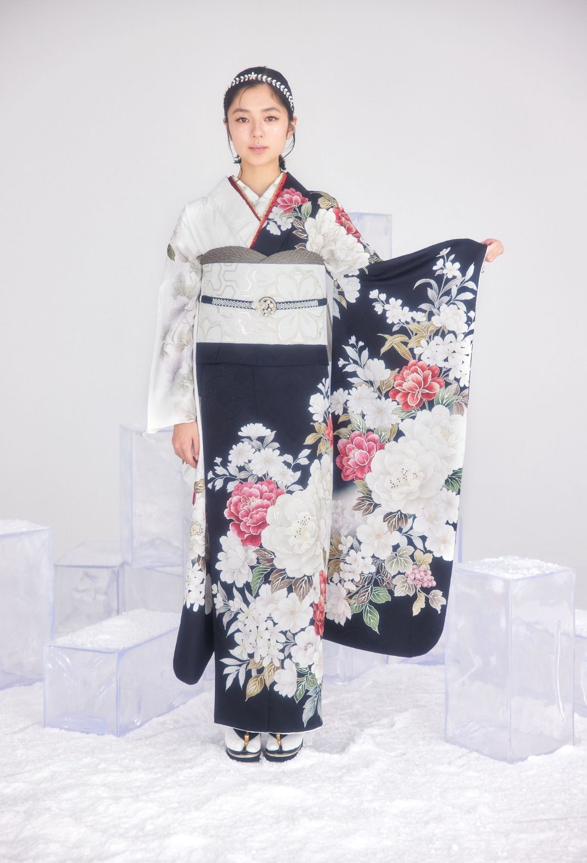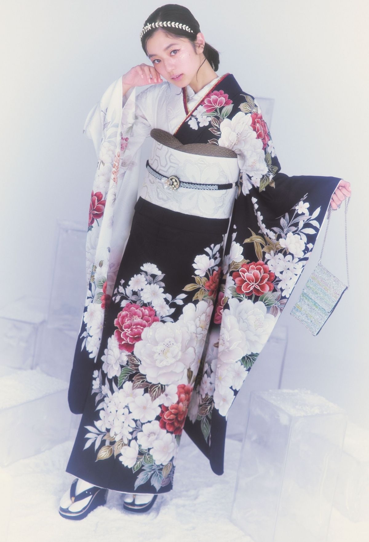 深い黒に金銀の光が重なり牡丹の気品が静かに際立つ