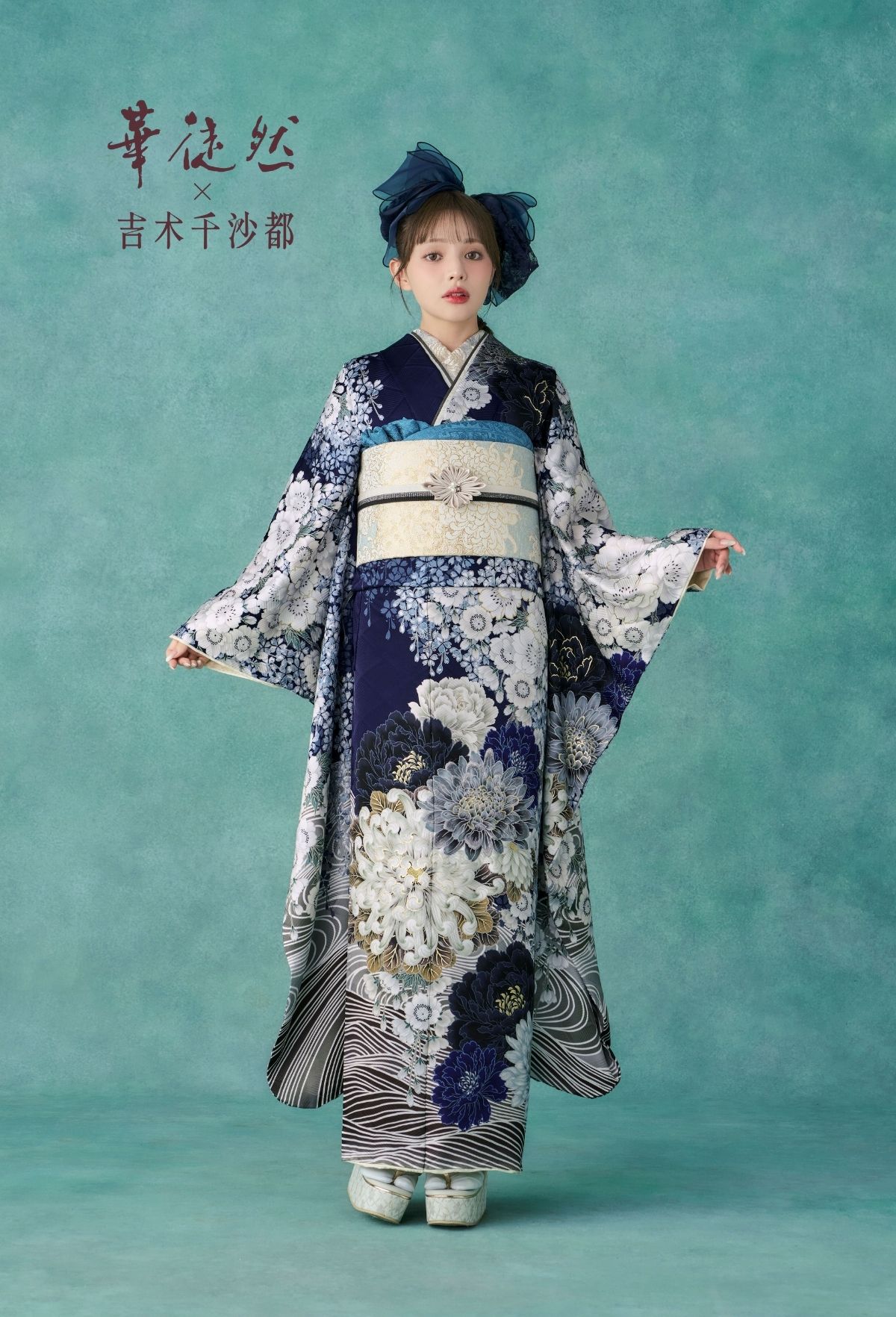 シックな色使いの中に華やかさを感じさせるデザインは、落ち着きと存在感を兼ね備えた大人の振袖スタイルを演出します。