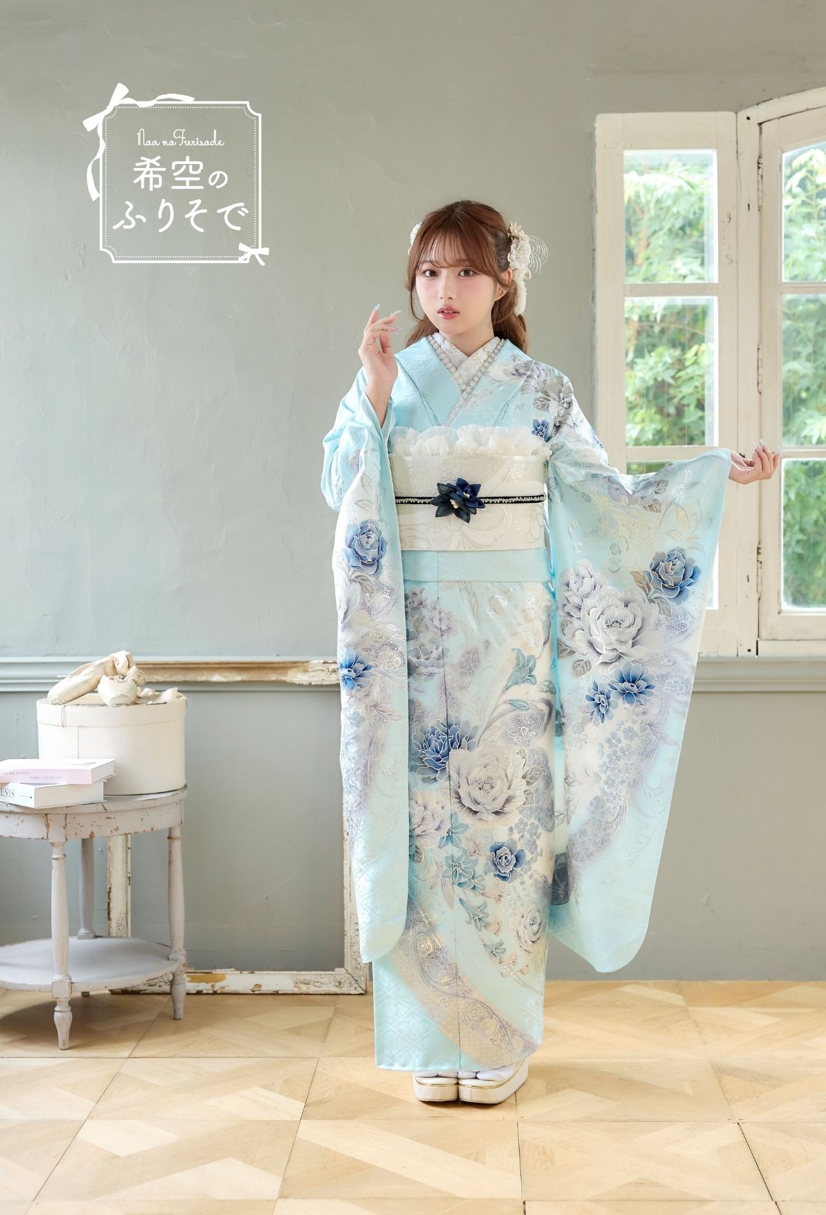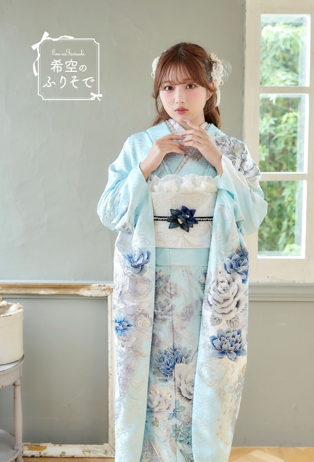 淡く甘いパステルカラーの振袖。小物が華やかさを際立てます